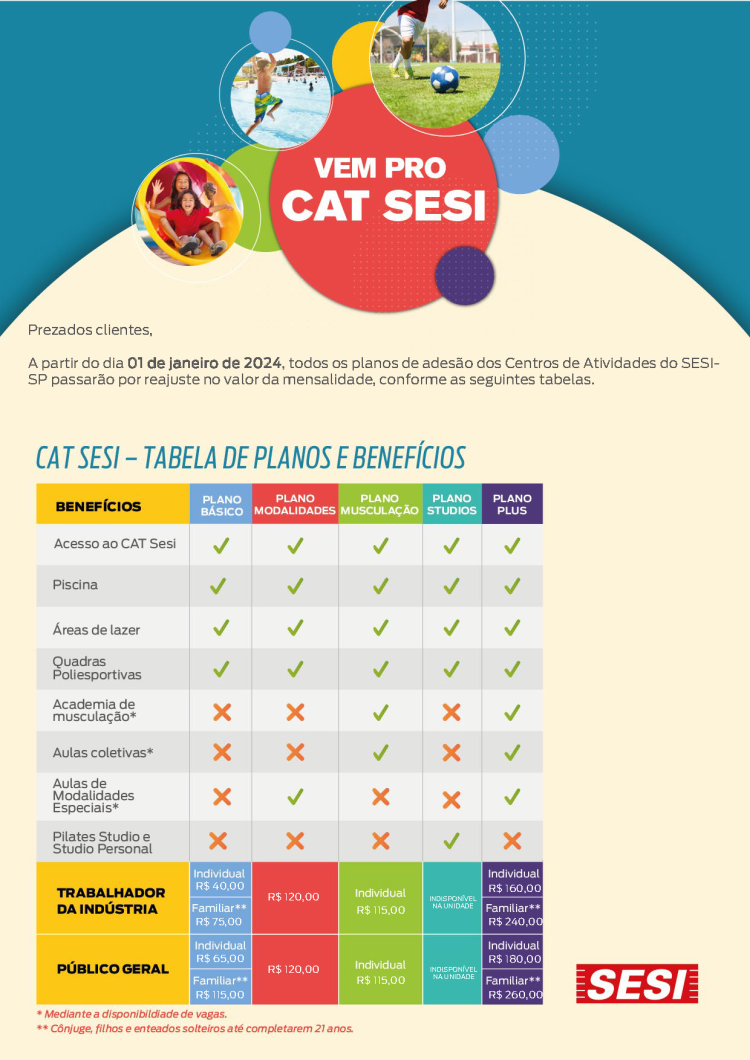 Confira os valores dos planos do CAT Sesi para o ano que vem